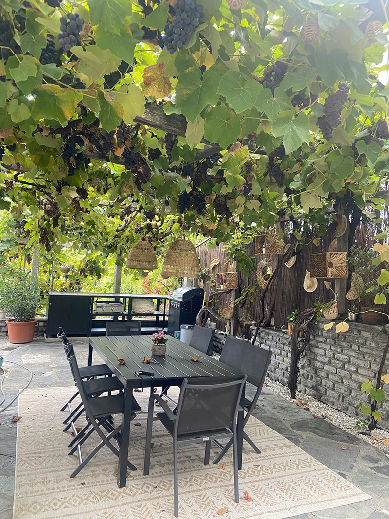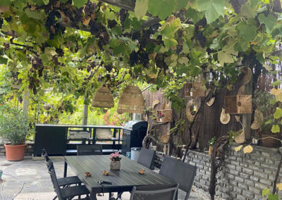 - Grand séjour lumineux avec cheminée et accès direct à la terrasse plein-sud et à la tonnelle recouverte de vignes de raisin Fragola.