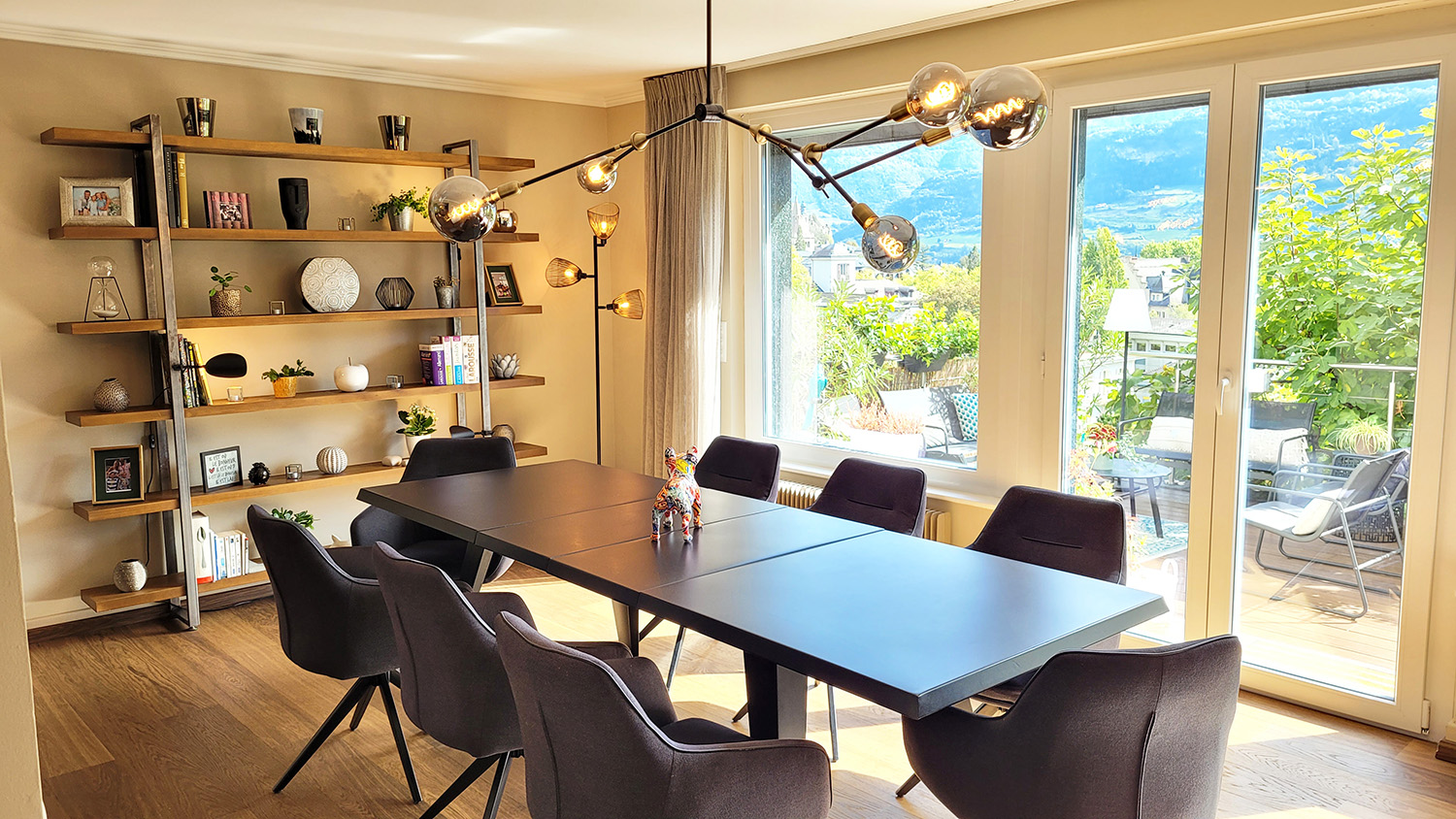 Située dans l’une des rues les plus confidentielles et recherchées de Sion, elle bénéficie d’une position légèrement dominante offrant une vue exceptionnelle sur les châteaux de Valère et de Tourbillon, ainsi que sur les toits de la vieille ville et les reliefs alpins environnants.