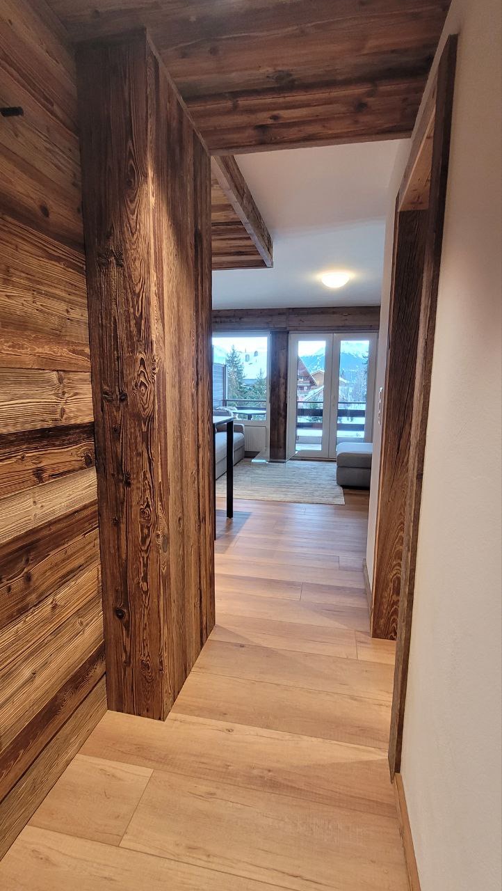 L’atmosphère montagne chic, avec ses matériaux nobles et son vieux bois, crée un lieu chaleureux où il fait bon vivre.