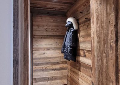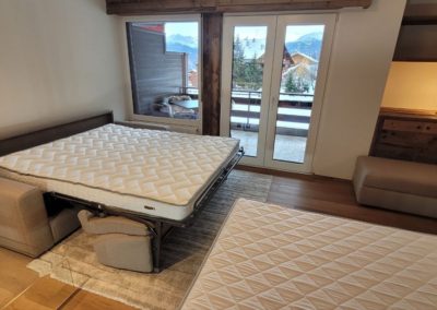 - Lit rabattable deux places 180×200, se fondant dans une superbe paroi en vieux bois pour libérer tout l’espace le jour